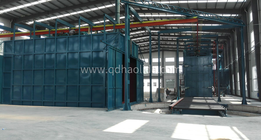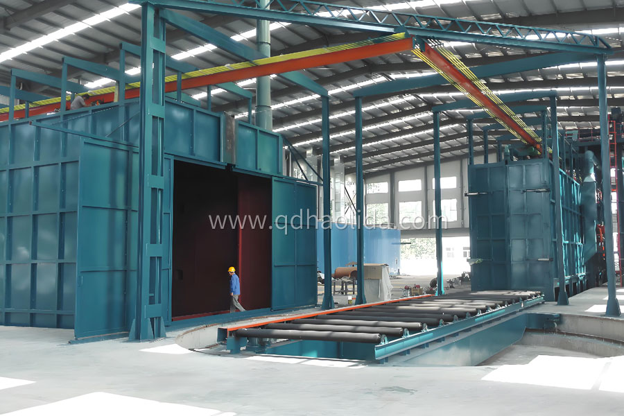 產(chǎn)品說明:Q37系列工程機械拋丸清理機主要用于工程機械、建筑機械等行業(yè)。其工作原理是:工件由兩個變頻調(diào)速電動葫蘆快速到達清理副室,勻速通過拋丸室,對大部件周身進行拋丸。吊鉤軌道可采用環(huán)形結(jié)構(gòu),卸件后的電動葫蘆快速回到裝料位。若采用3組電動葫蘆,可實現(xiàn)裝料、拋丸、卸料流水線工作,提高拋丸的效果和效率。