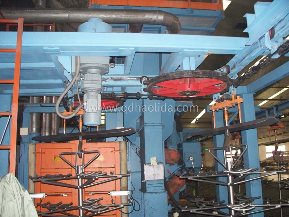 Q48懸鏈步進式拋丸清理機常見的型號有Q483、Q485、Q488和Q4810,以下是其部分參數(shù):
